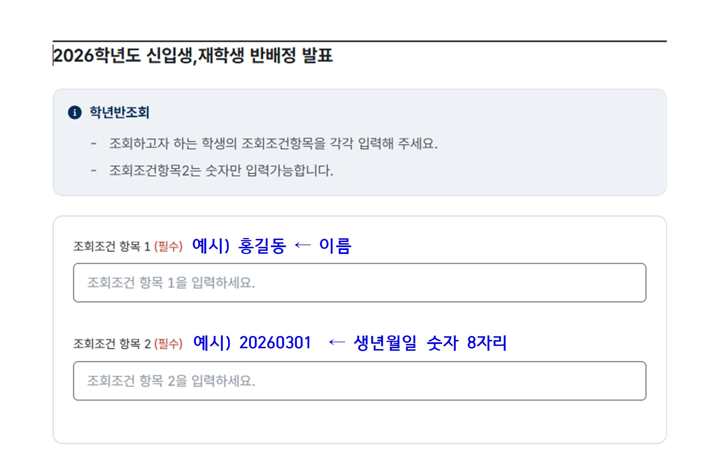 <2026. 신입생, 재학생 반편성 조회 안내>