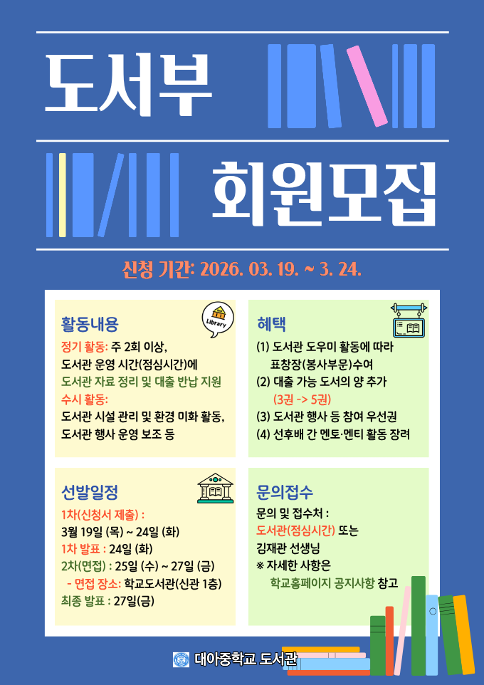 2026학년도에 함께 활동할 도서부 회원을 모집합니다.
